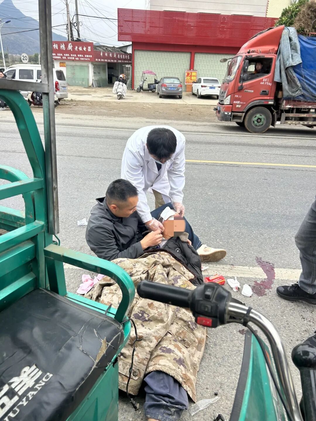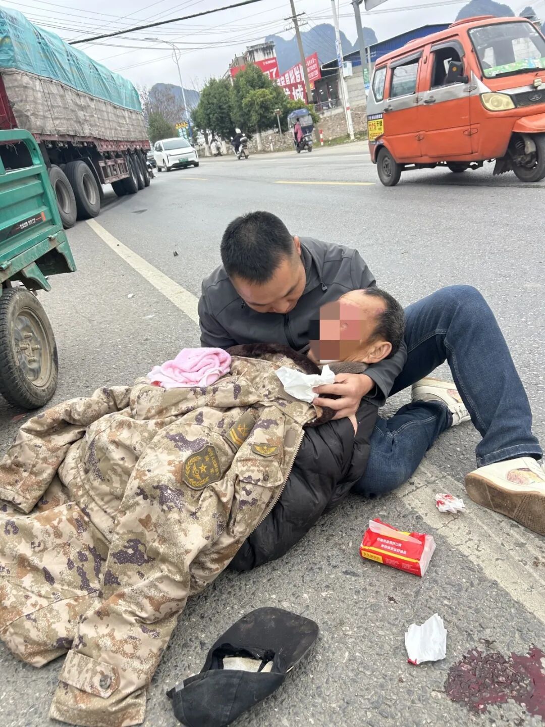 leyu体育 桂林一老东谈主被三轮车压住头部血流不啻,放假军东谈主冲向前进行急救