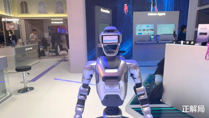 讯飞的展台派遣是成体系的,AINOTE是刺向高端市集的尖刀,几步外,那台引起不少围不雅的机器东说念主,展示的是另一套打法。
